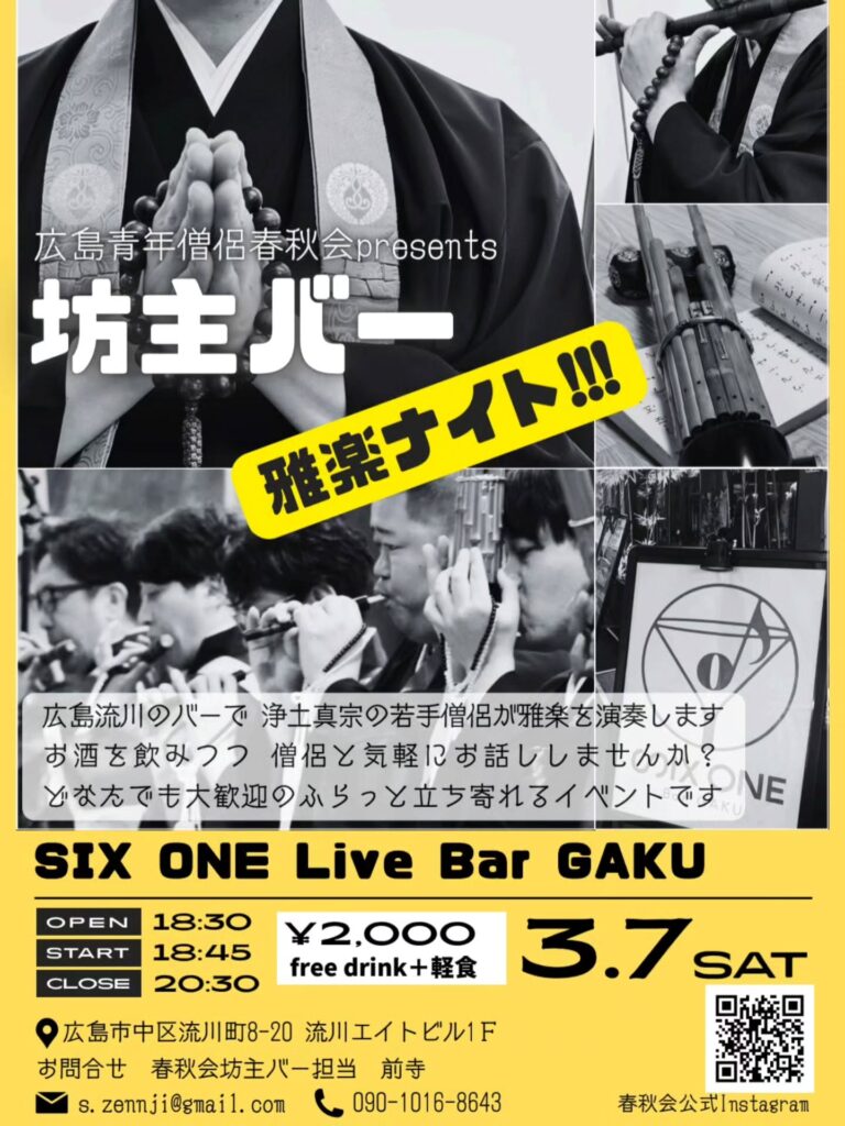 3. 3月7日(土)広島青年僧侶春秋会 presents 坊主バー 雅楽ナイト!!!