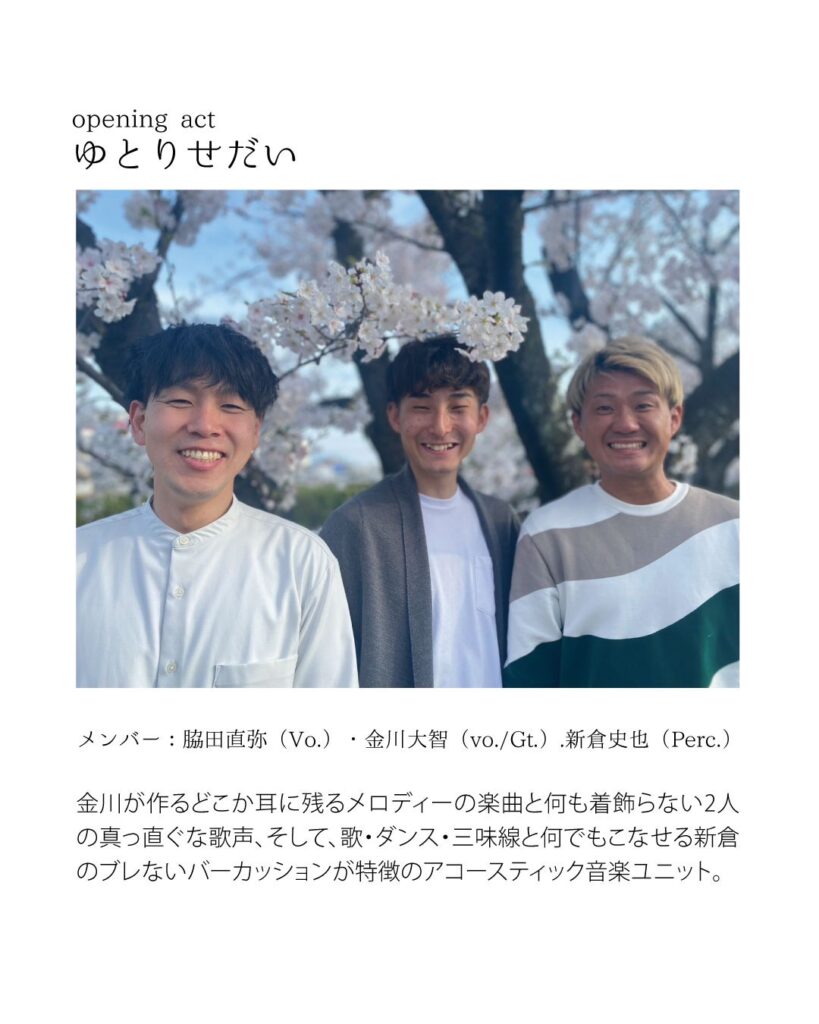 | 出演 | 梅田真志 ゲスト / 宮本咲江(Piano) OP. / ゆとりせだい |