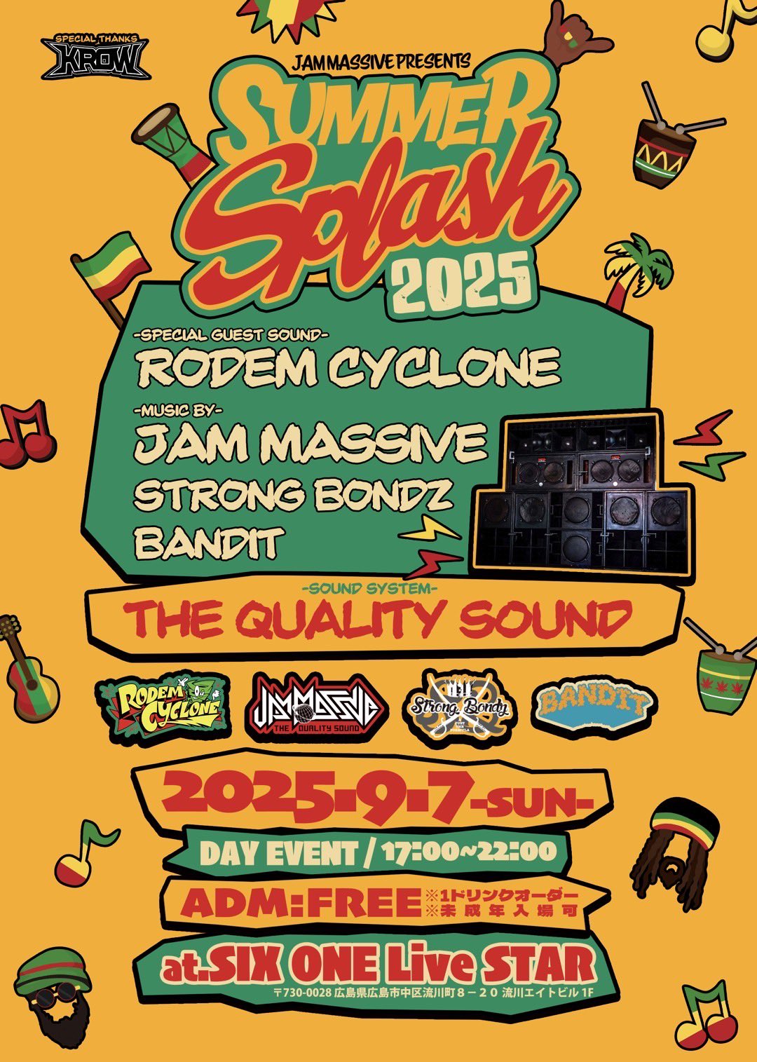 | 出演 | SP GUEST : RODEM CYCLONE / MUSIC BY : JAM MASSIVE with The Quality Sound System / STRONG BONDZ / BANDIT |